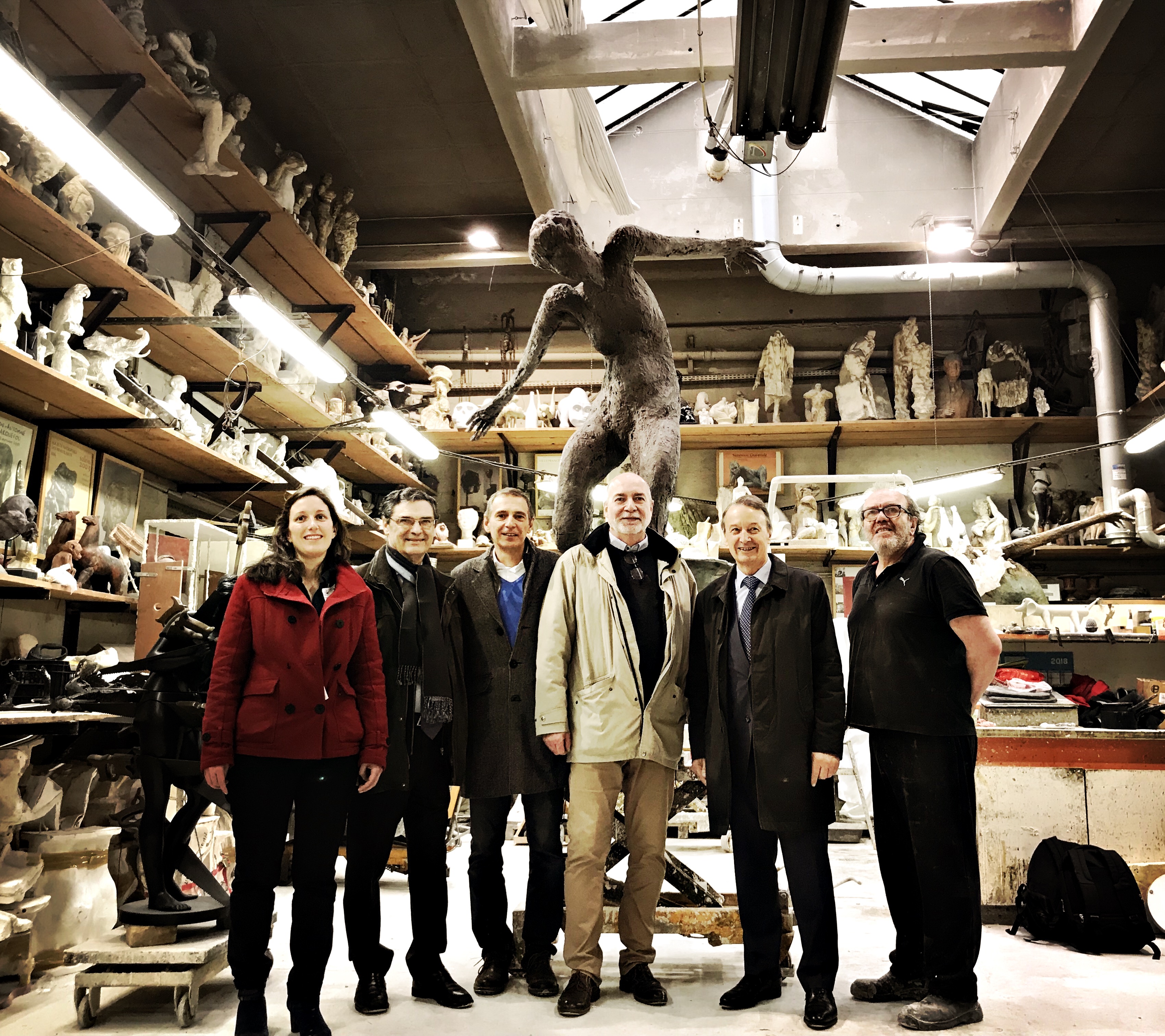 Monsieur Patrick Devedjian président du conseil départemental des Hauts-de-Seine, Monsieur Rémi Muzeau maire de Clichy et son équipe, nous ont fait l’honneur de passer à la fonderie apprécier le bronze « En équilibre » de l’artiste André Hogommat destiné à être installé places des nations-unies dans la ville de Clichy.